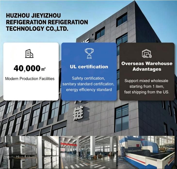 dual-checked precision in component forming, meeting both UL471 safety and DOE/CEC energy efficiency requirements. Computer controlled Foaming technology creates uniform insulation layers, delivering 30 % better thermal efficiency than industry benchmarks. Certified technicians assemble refrigeration systems to UL471 standards while optimizing energy performance, supported by ISO9001 quality control ensuring consistent safety, sanitation, and efficiency across every unit. Customized packaging paired with automated palletizing systems safeguards products from factory to final destination. North American customers can enjoy fast delivery through our warehouse located in the United States, thereby significantly reducing inventory costs and improving supply chain flexibility. Huzhou Jieyizhou transcends traditional manufacturing to act as a strategic partner for growth. By integrating certified quality, energy efficiency, and localized logistics, we empower distributors to reduce total cost of ownership while expanding market share. Connect with us today to explore how our solutions can strengthen your product portfolio and drive business success.